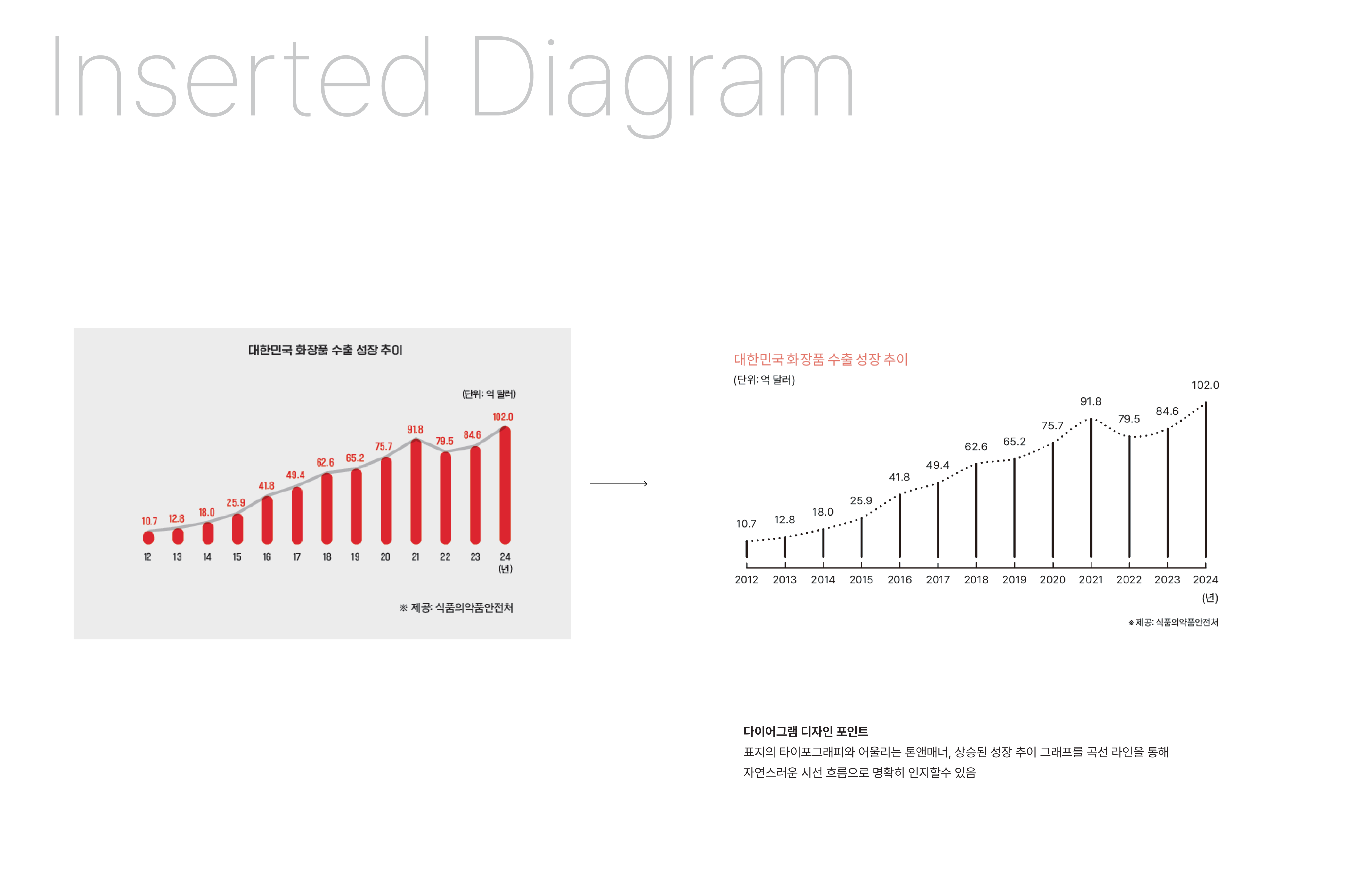 K-Beauty를 선도하는 코스맥스의 기업 가치와 뷰티 감성을 ‘K’에 담아내어 상징적 형태로 재해석하였으며, 심미성과 명확한 메시지를 전달할 수 있는 폰트를 사용한 타이포그래피를 통해 디자인을 완성했습니다.