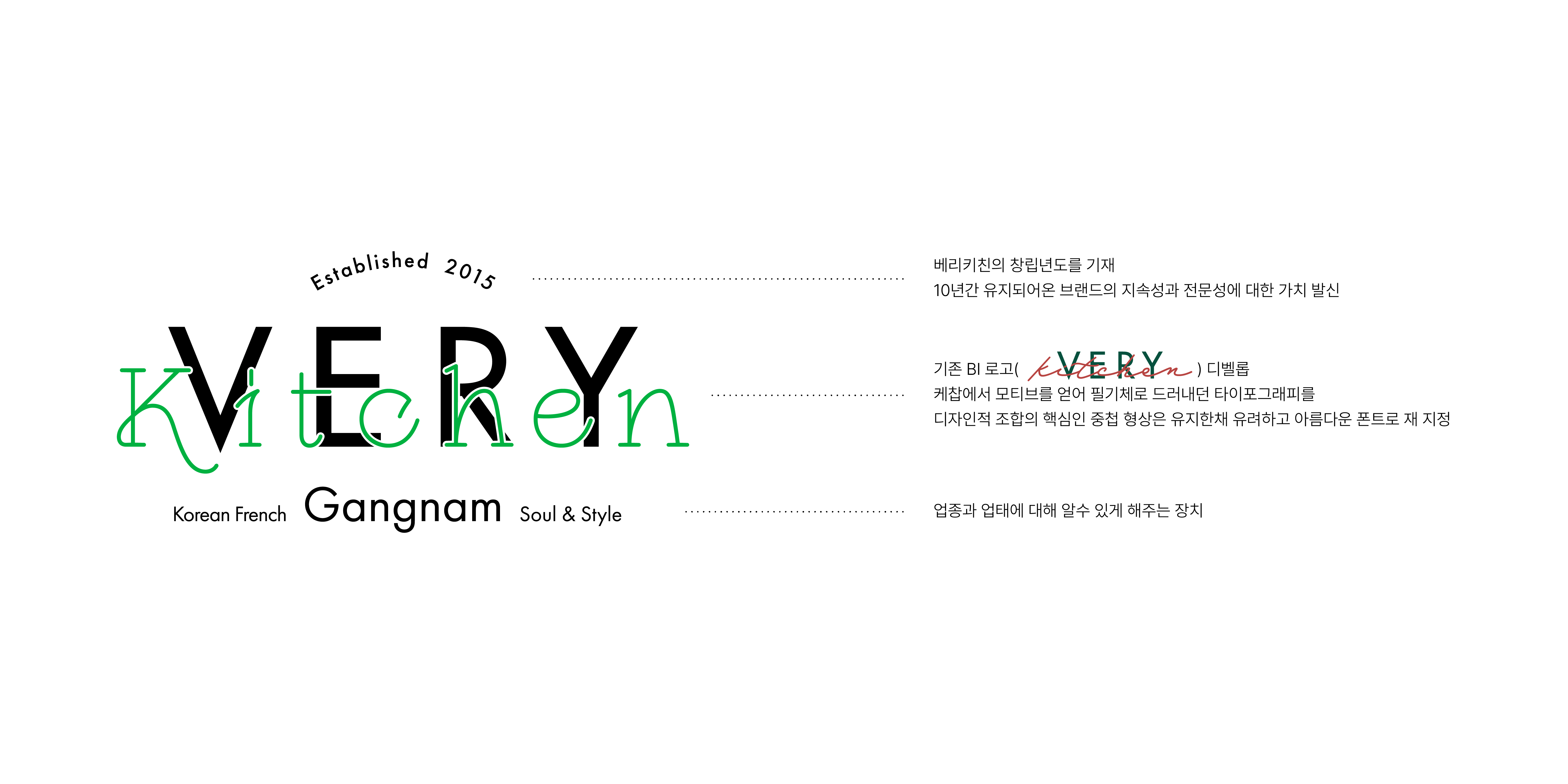 새로운 베리키친 BI는 브랜드명의 구조적 힘을 강조한 VERY와, 감성적이고 손맛을 상징하는 Kitchen의 대비를 통해